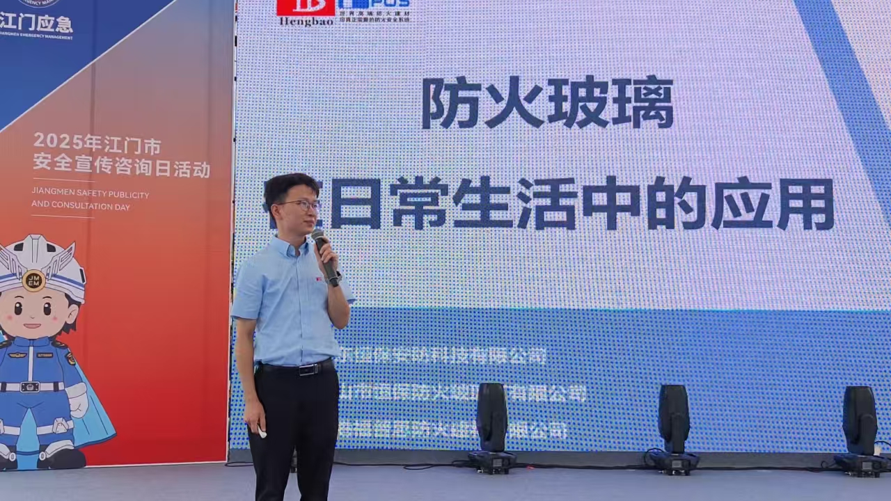 活動(dòng)現(xiàn)場(chǎng),恒保公司運(yùn)營(yíng)總監(jiān)馮穎超登上演講臺(tái),圍繞 “防火玻璃在日常生活中的應(yīng)用”展開(kāi)深度講解,從防火玻璃的防火原理、性能優(yōu)勢(shì),到在住宅、商業(yè)建筑、公共設(shè)施等不同場(chǎng)景下的具體應(yīng)用,進(jìn)行了全方位、多層次的闡述。生動(dòng)的案例與專業(yè)的數(shù)據(jù)結(jié)合,讓在場(chǎng)觀眾清晰認(rèn)識(shí)到防火玻璃在關(guān)鍵時(shí)刻對(duì)生命財(cái)產(chǎn)安全的重要保障作用,贏得了陣陣熱烈掌聲。
